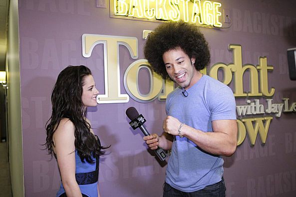 Kristen Stewart esteve toda linda no The Tonight Show com o apresentador Jay Leno no início do mês promovendo Amanhecer – Parte 1. Agora temos duas lindas fotos de bastidores onde a atriz aparece toda diva!